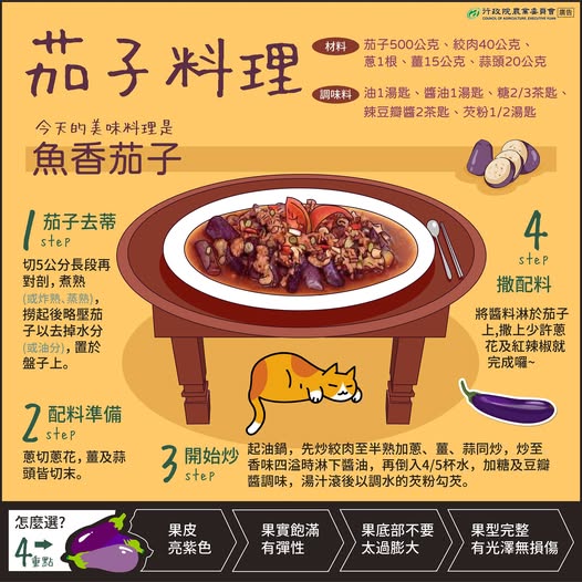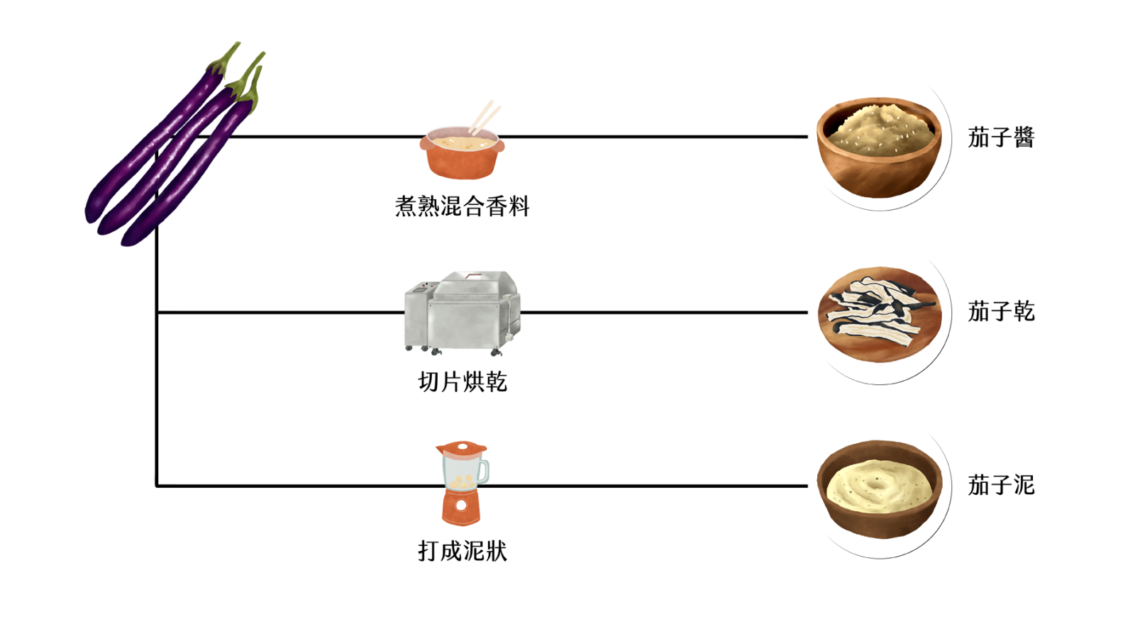 茄子水分多、口感柔軟,而且味道清甜,很適合製作成清爽小菜。處理方式相當十分簡單,先將茄子洗淨,去蒂後切成段,再蒸熟或燙熟,放涼淋上調味料就完成了!常見的調味料組合,包括醬油膏、香油、蒜末等,搭配少許辣椒與九層塔,既能突顯茄子本身風味,也能增加層次感,是居家餐桌常見且容易上手的料理方式。[註01]