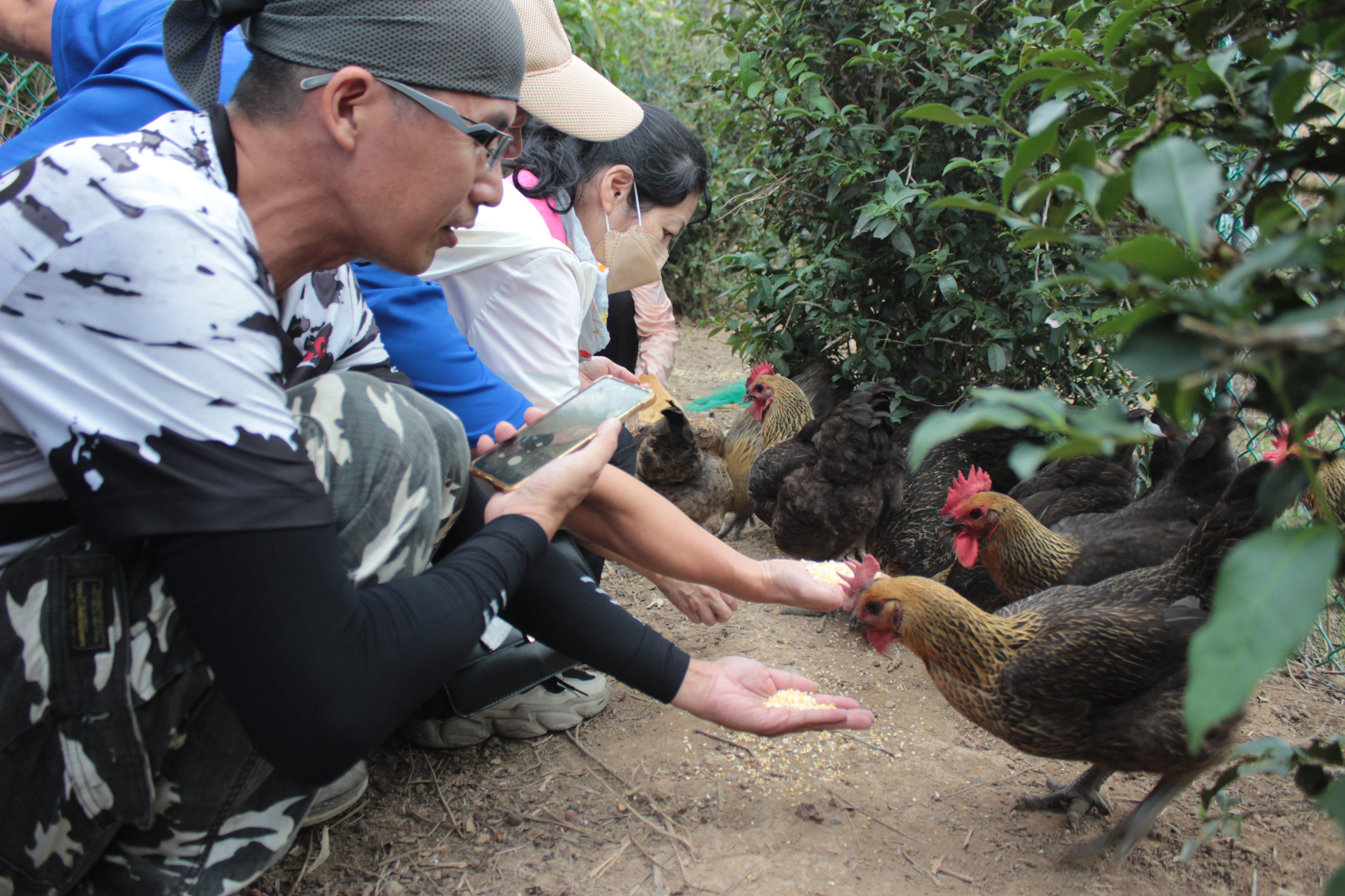 本次課程重點為邀請新北市青年農民聯誼會許元耀會長現場帶領體驗一日雞農友善放牧,許會長帶領學員了解園區內之生態養殖蜜蜂與蜂蜜生產,友善飼養的放牧土雞與白帽雞,還有茶樹種植與茶葉茶籽採收,最後品嚐風味獨特的當日生鮮土雞蛋與蜂蜜飲料。讓學員不只親手體驗農民辛勞,也享用農事成果,來體驗感受粒粒皆辛苦得來不易的農產品。