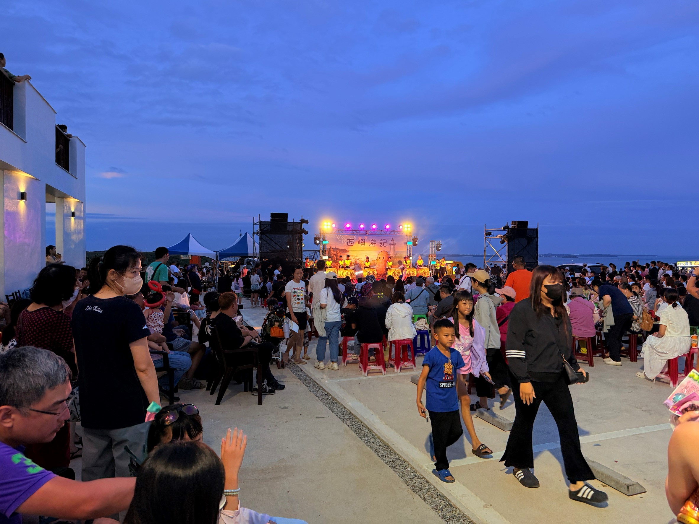 17時起西嶼白膜花生食農教育活動,以及一系列精彩的舞臺演出,由Luxy Girls美式啦啦隊、變臉+魔術表演、好地樂團、幼兒園舞蹈表演、外垵國小戰鼓等團體輪番登場,還有SNOOPY造型氣球表演及氣球發送,以及臺灣夢舞蹈表演等,吸引大批人潮持續湧進。