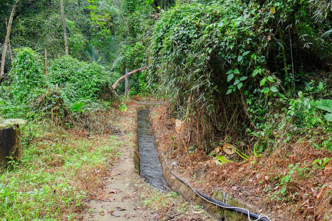 當小編我親自走訪時想說在哪裡時,結果發現要前往過水吊橋需要先走過一條往下的階梯,當你走完階梯後看到水路,往右邊走就會看到過水吊橋了🤩