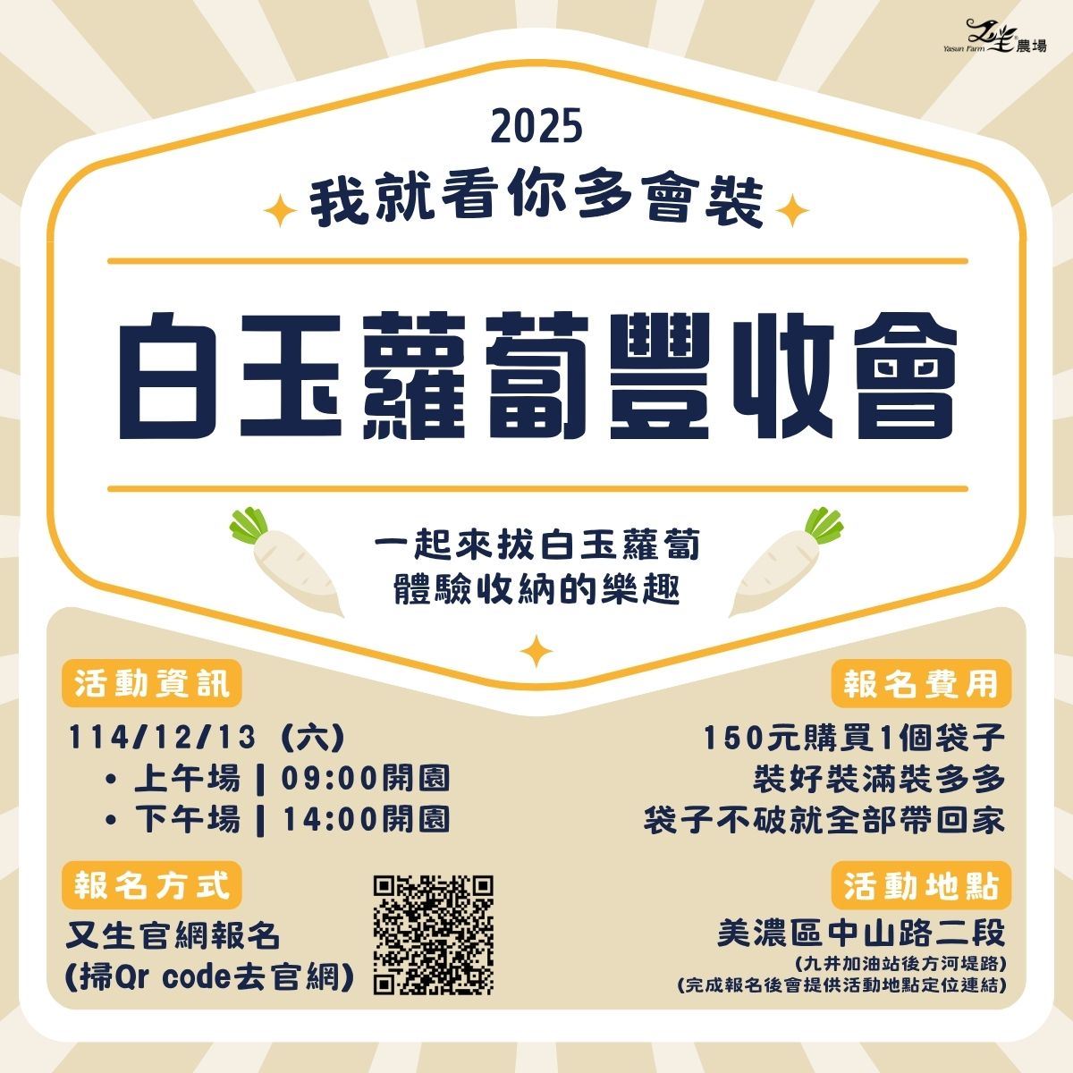 ➎ 完成報名即表示您同意活動現場可能進行拍攝或錄影,且主辦單位可將活動照片與影片用於記錄與社群分享,讓更多人看見這場美好的體驗!