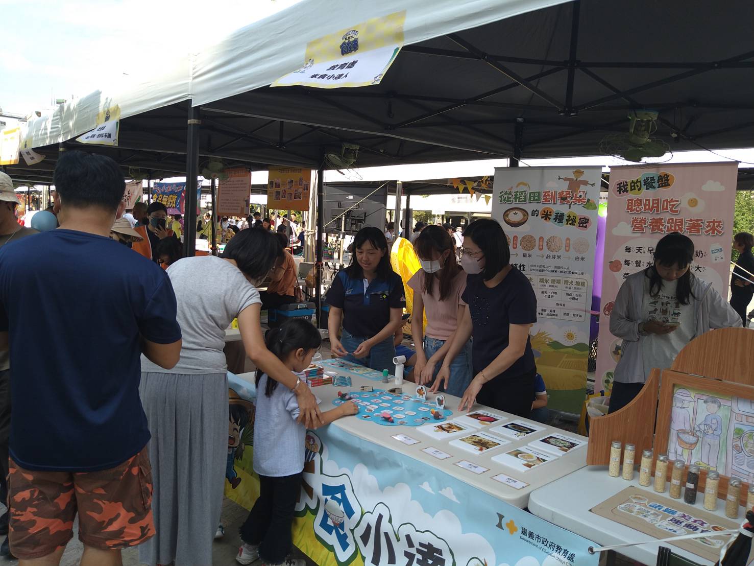 嘉義市政府舉辦【2025食農嘉年華-食在市】,本次教育處為了讓大小朋友認識嘉義市米食文化,特別設計闖關遊戲送好禮活動,從嘉義美食地圖中找出哪些是米製品,並說出是用什麼米做成的,於現場也擺設了各種米,讓大家認識米的實際樣貌,最後並請大小朋友念出我的餐盤六句口訣,完成闖關活動,就送精美小禮物。