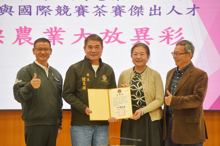 苗栗縣近來在農業發展又屢創佳績!不僅出現首位通過農業部認證的食農教育師資人員,還有14人取得農業部食農教育專業人員認證;另在國際茶賽及創意茶飲、短視頻競賽,亦捷報連連。縣長鍾東錦18日接見表揚這些在國內和國際舞台大放異彩的優秀農政人員和農友,肯定他們卓越的表現。