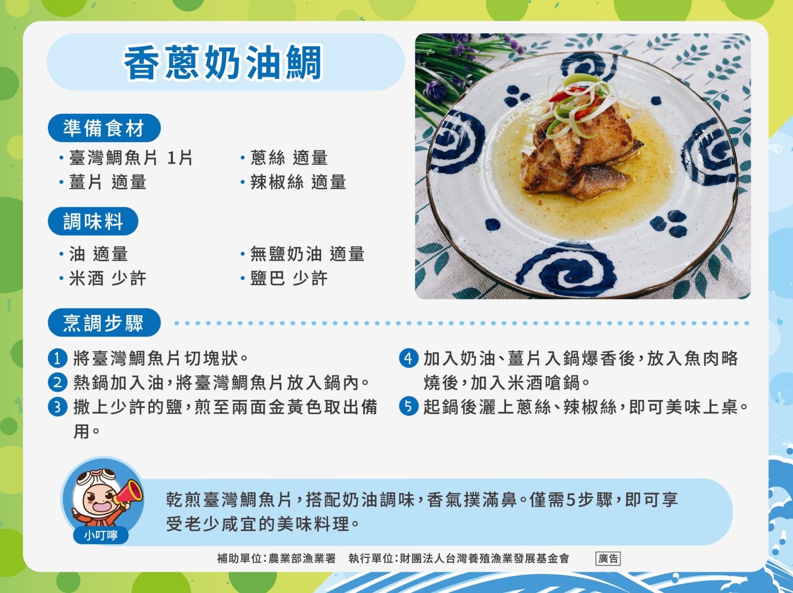 漁業署進一步表示,國產臺灣鯛品質穩定、營養豐富且肉質細膩好消化,無論是乾煎、紅燒及煮湯都非常適合,富含維生素B12,及多種人體必需胺基酸,是現代人健康飲食的最佳選擇,更是民眾值得信賴安心消費的魚種。