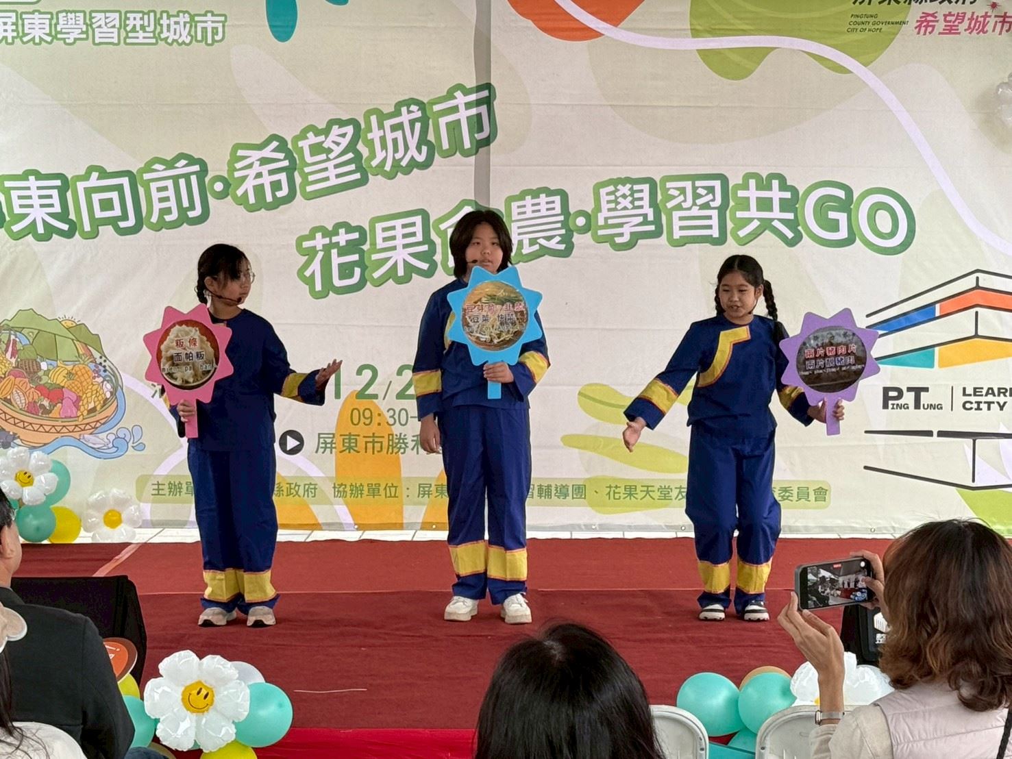 為展現屏東縣114年推動學習型城市與食農教育的豐碩成果,屏東縣政府今(27)日於屏東市勝利星村舉辦「學習型城市暨食農教育成果展」,以「屏東向前·希望城市-花果食農·學習共GO」為主題,結合教育、產業與社區力量,打造全民共享的終身學習盛會。