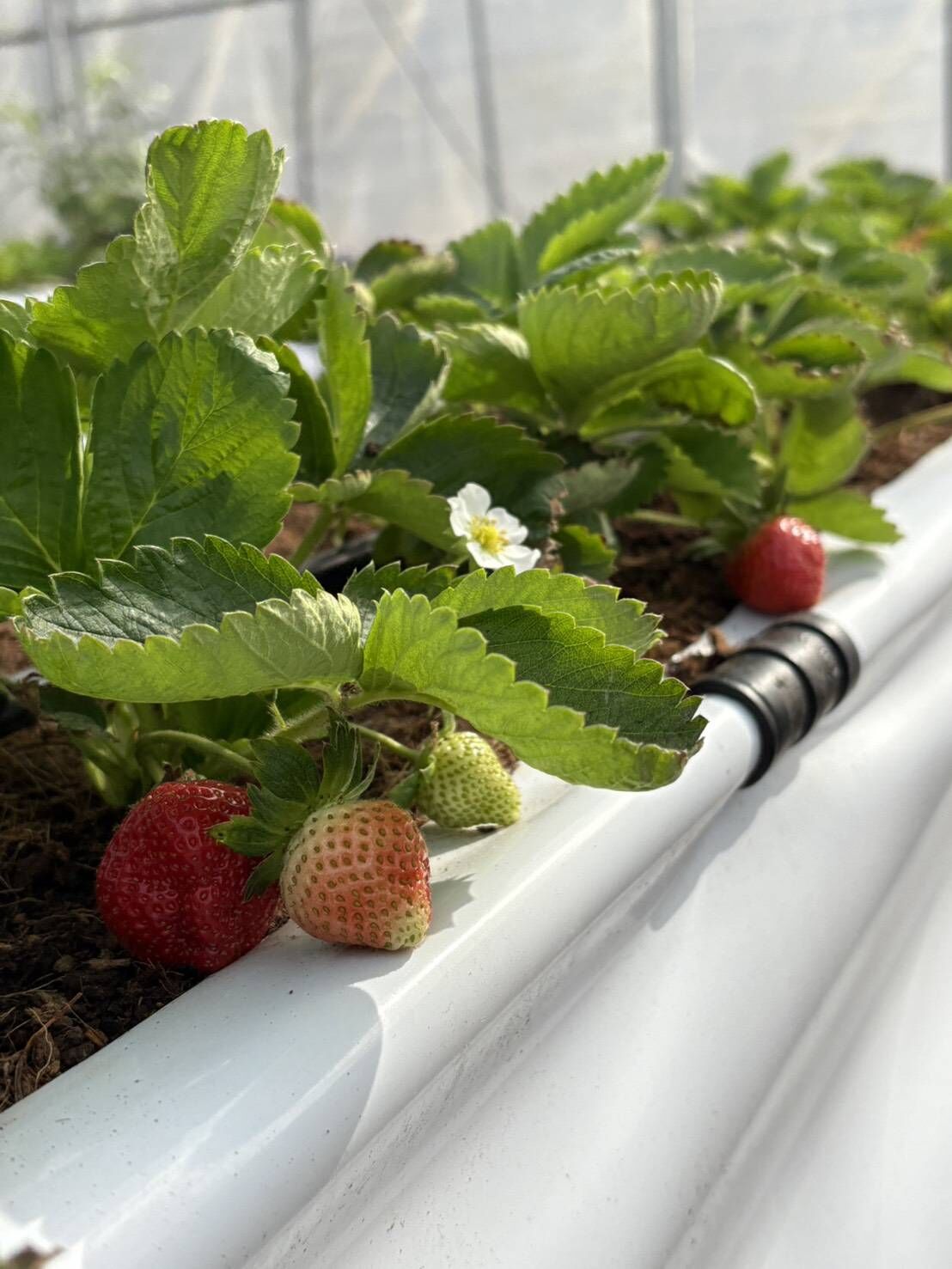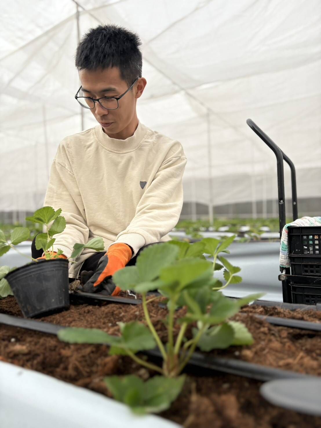 秧米草莓園採高架離地栽培方式,結合滴灌系統、溫濕度監控及病蟲害防治等技術,面積約1,916平方公尺,種植草莓株數約5,000株,同時規劃番茄等作物,提升農業附加價值,儘管初期曾遭逢颱風考驗導致首批作物歉收,園主仍不氣餒,持續調整栽培管理方式,逐步穩定生產。