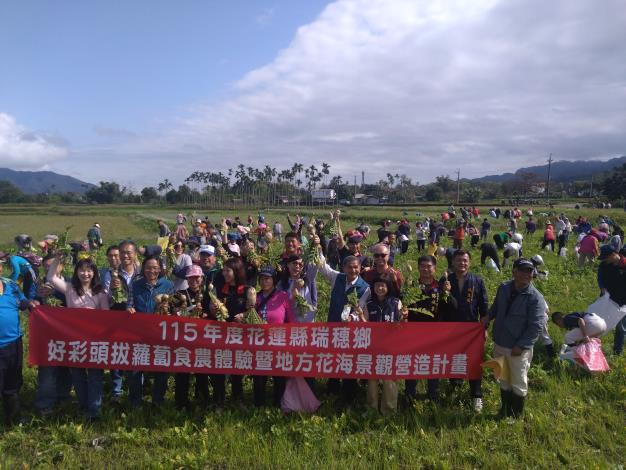 為深化食農教育推廣、拉近民眾與土地的距離,花蓮縣政府攜手瑞穗鄉農會辦理「拔蘿蔔田間體驗活動」,邀請親子家庭、學校團體及社區民眾走入瑞穗鄉農田,親手體驗採收當季新鮮蘿蔔的樂趣。透過實際參與農事過程,讓民眾了解農作物從播種到收成的辛勞,也在與土地接觸的過程中,留下難得的生活記憶。