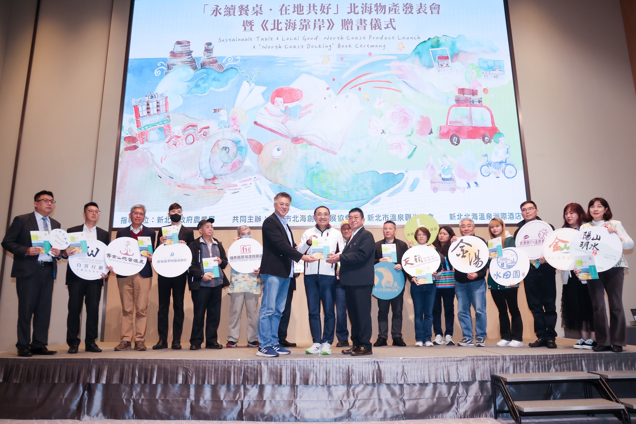 為推動北海岸農業創生,新北市長侯友宜今(8)日出席「永續餐桌・在地共好」北海物產發表會暨《北海靠岸》贈書儀式,見證跨域合作里程碑。侯友宜感謝地域品牌「金山漫遊」與市府攜手,將北海岸物產引入新北北海溫泉洲際酒店等北海岸15家旅宿業者,推動長期食材供應合作;同時贈予合作業者《北海靠岸》一書,希望帶動北海岸旅客留宿過夜,深入了解在地風土與產業故事,共創夜經濟。