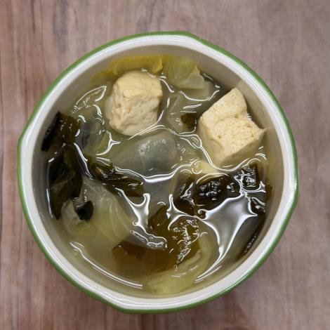 在實務運用上,高麗菜料理多元且容易入菜,深受學生喜愛,平均每週至少會出現一次。常見菜單料理包含,「螞蟻上樹」將高麗菜加入冬粉與絞肉拌炒,口感滑順;或製作「高麗菜豆腐味噌湯」,結合清甜蔬菜與濃郁湯底,溫潤順口;亦常搭配學童最愛的鍋燒意麵等料理,提升整體風味層次,讓學生在享用美味的同時,也能攝取均衡營養。