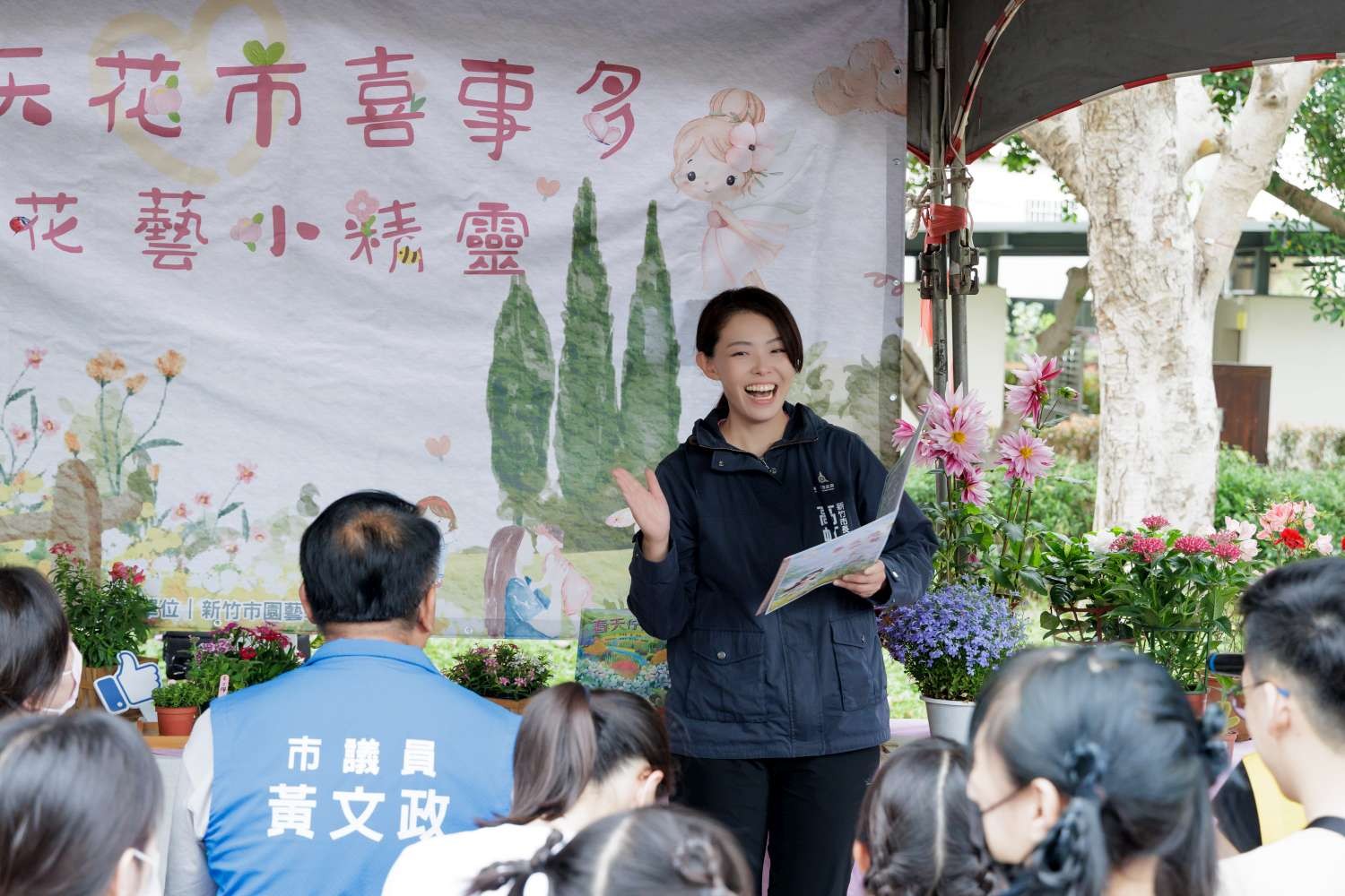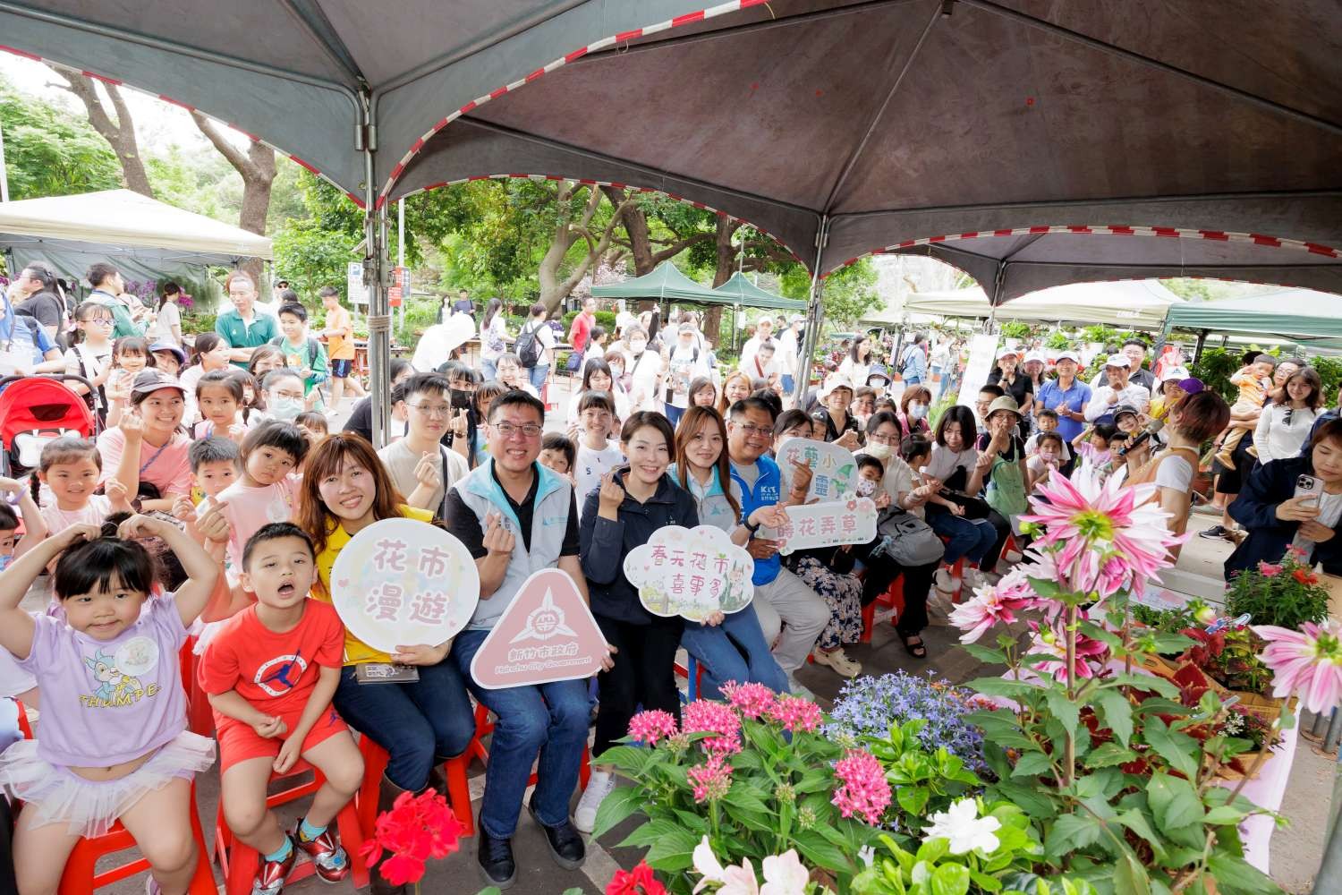 新竹市政府今(18)日於假日花市舉辦「春天花市喜事多—花藝小精靈」親子活動,結合花卉展售、故事互動、手作體驗及趣味闖關,吸引眾多親子家庭熱情參與。市長高虹安特地到場與孩子們互動,以說故事等寓教於樂的方式引領市民感受自然之美,同時推廣在地花卉產業,為春日竹市增添溫馨活力的休閒氛圍。