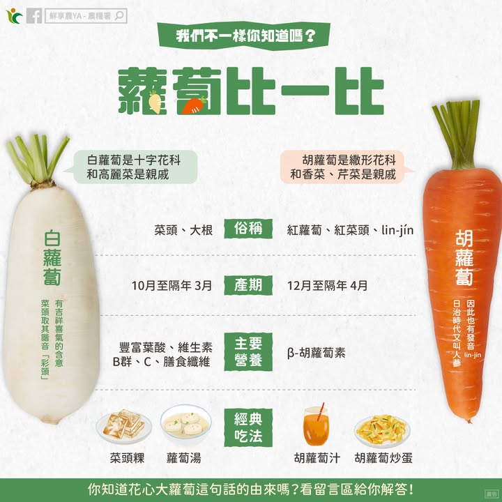 「白蘿蔔」「胡蘿蔔」比一比🥕
