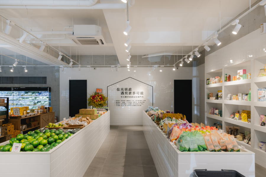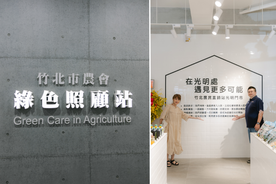 臺灣各地方農民直銷站皆肩負「地產地消,食農教育,從土地到餐桌」的使命,鄉土性十足,而竹北農民直銷站卻以摩登、闊朗、文青的建築風格登場,日式清水模和北歐風原木展示架為直銷站主體,外觀設計成農民戴斗笠穿蓑衣的意象,內部保留早期五座穀倉的天花板,動線大器流暢,自然光線十足,舒適的購物環境和國內所謂貴婦超市相比也毫不遜色,全國特色農產品在竹北農民直銷站的貨架上彷彿自己會說話,消費者優雅而流暢地推著購物車在站內悠然行走,整體交易氣氛輕鬆而享受,破億的年營業額看似容易,實則是竹北農會一步一腳印的努力成果。