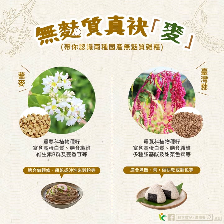 你知道哪些國產雜糧食材是 #無麩質 的嗎?